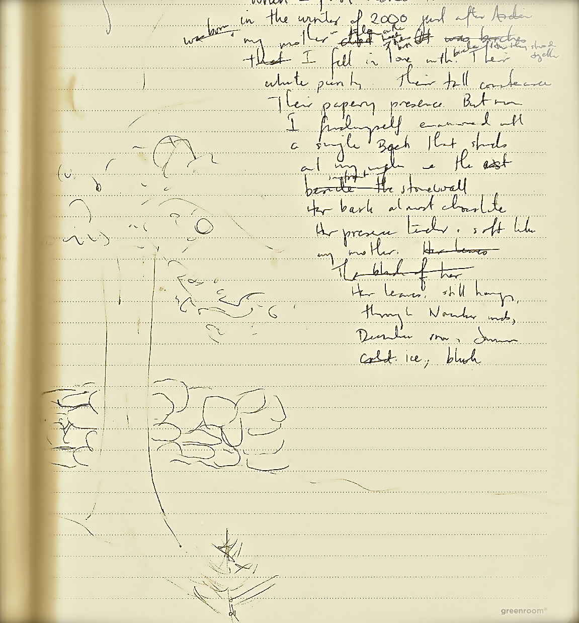 When we first moved to Marlboro, in the winter of 2000, just after the baby was born and my mother was taken, it was the birches who soothed me–how they stood together–tall and thin and papery white.