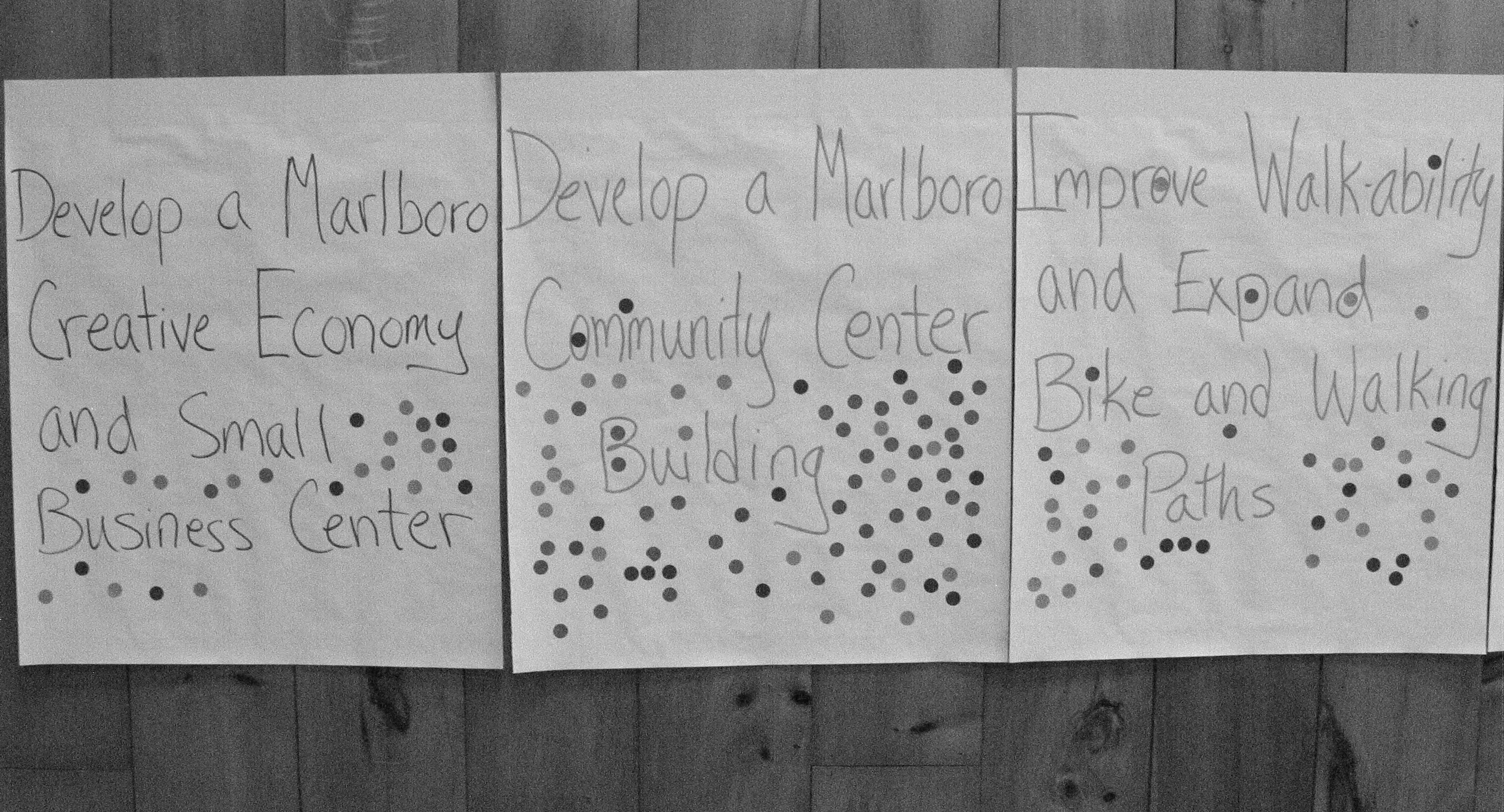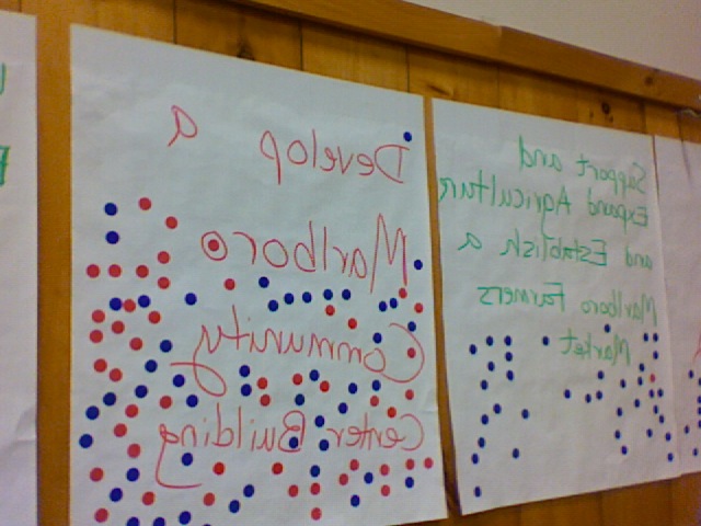 Marlborians at the Second Community Meeting with the Vermont Council of Rural Development choose the top TWO focuses for ACTION.