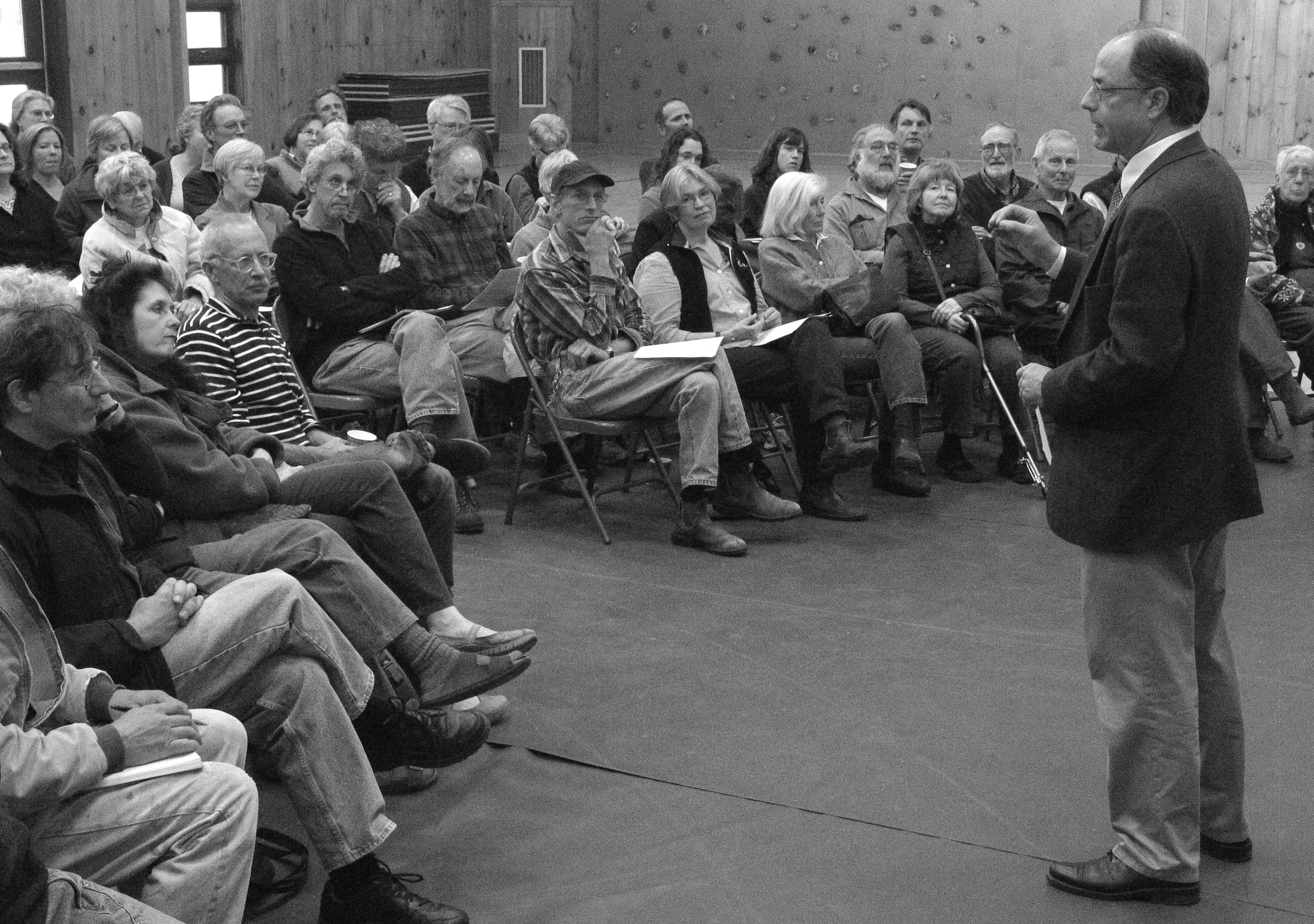 Executive Director of VT Council on Rural Dev’t, Paul Costello addresses the community; says VCRD looks 4 towns ready to do this work