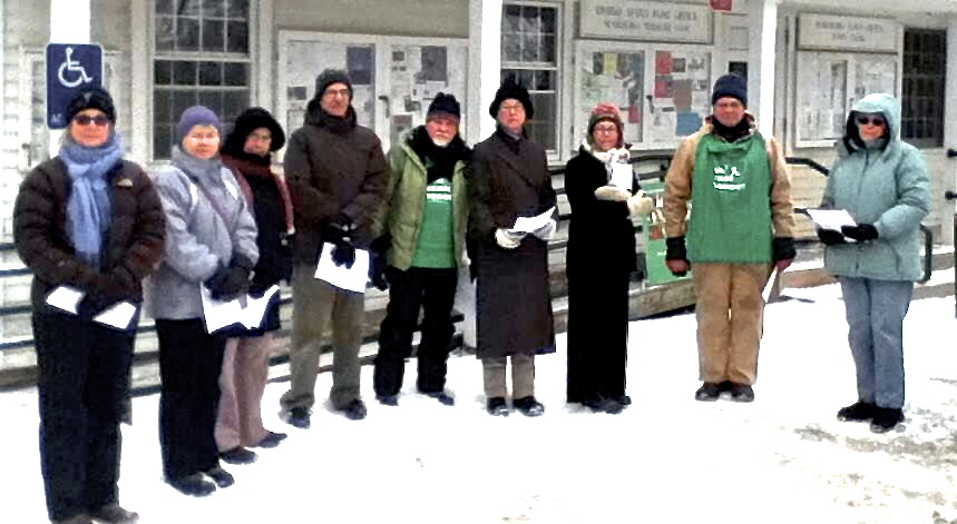 We woke to zero and bundled up better than ever to stand in a circle outside the post office where the green banner hung with the sweet faces of those 20 children and the tender adults who cared for them.